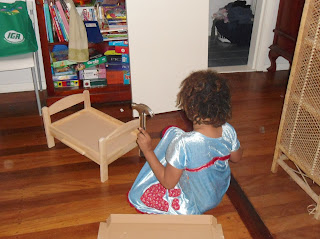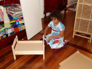 I brought a doll bed home from Ikea and Miss A. was determined to assemble it herself.